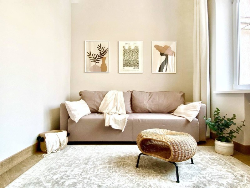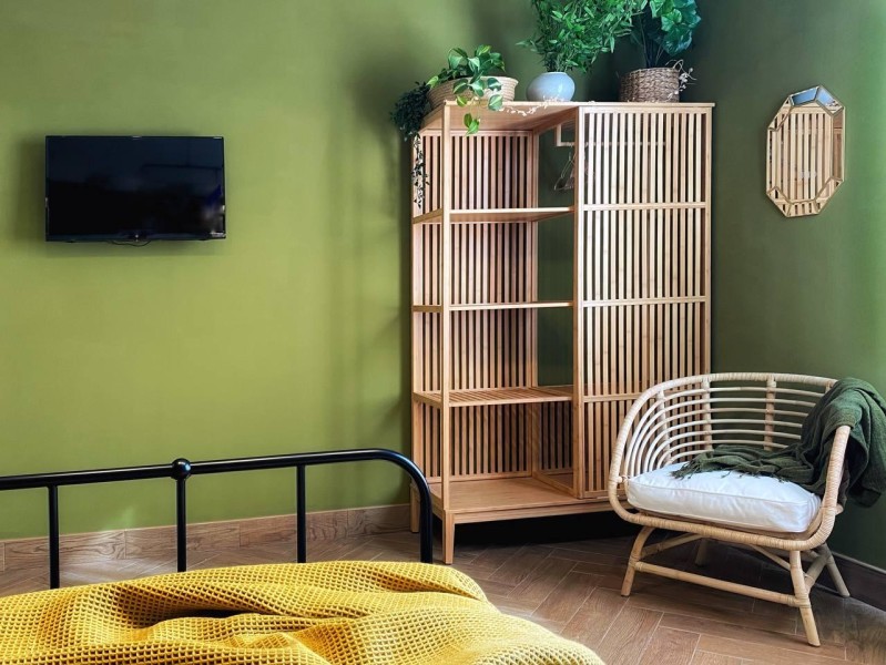 - Мебель: вешалка, диван раскладной, зеркало, кровать двуспальная, кухонная мебель, набор плетеной мебели, прикроватные столики, стеллаж, стол обеденный, стулья, шкаф